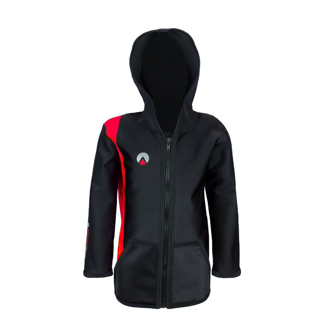 Păstrează-le copiilor căldura și protecția împotriva elementelor cu jacheta Sharkskin Chillproof cu glugă - jacheta perfectă pentru a te însoți în toate aventurile tale din sporturile nautice.